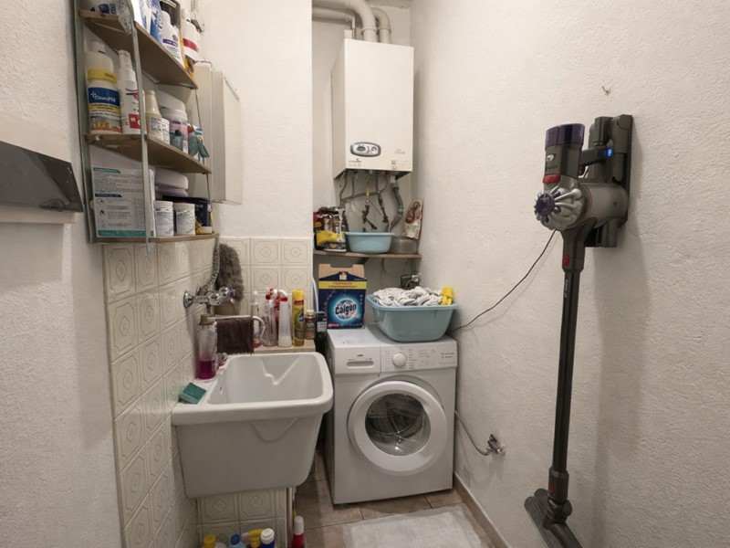 Ingresso, salotto ampio con balcone, cucina separata, disimpegno con locale caldaia/lavanderia, due camere matrimoniali e bagno.