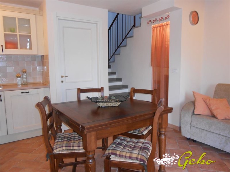 Grazioso appartamento 73 mq situato all'interno di un complesso residenziale a destinazione turistica, con ingresso indipendente dal giardino privato.\n\nL'abitazione accoglie in un caratteristico resede antistante l'ingresso, perfetto per trascorrere piacevoli momenti di relax all'aperto. L'accesso conduce direttamente alla zona soggiorno con angolo cottura e bagno. Salendo pochi gradini si raggiunge la camera matrimoniale, che si apre sul giardino privato sul retro: uno spazio ampio e ombreggiato, ideale per godersi la frescura estiva in totale tranquillità.\n\nLa proprietà dispone inoltre di un grazioso soppalco, alto e pienamente vivibile, dove è possibile ricavare un'ulteriore zona notte oppure una comoda area living.\nLa casa luminosa accoglie in ambienti rustici che rispettano lo stile toscano come i soffitti a travi in legno , rendono una atmosfera ancora più piacevole . \n \nIl borgo è impreziosito da una piscina condominiale, situata a pochi passi dall'abitazione, che ne completa comfort e vivibilità. Ampio parcheggio disponibile nelle immediate vicinanze.\n\nIl contesto è immerso nella campagna di Gambassi Terme, in una zona tranquilla circondata da piante e querce secolari tipiche dei boschi collinari toscani , ideale per chi desidera pace e riservatezza senza rinunciare alla comodità dei servizi. La posizione è strategica, a breve distanza da rinomate località turistiche come San Gimignano (8 km), Montaione (10 km), Volterra (20 km) e Siena (50 km).\n\nNon esitare a contattarci per fissare una visita :\n\nGEKO IMMOBILIARE E CONDOMINI SNC\ninfo@gekoimmobiliare.com - www.gekoimmobiliare.com\nCell. 331 5805031 - 331 2222793 - 0577891135 - Maggiori Dettagli: Cucina Abitabile, Porta blindata