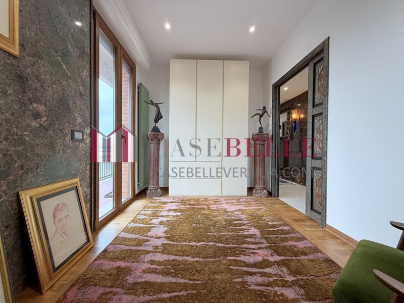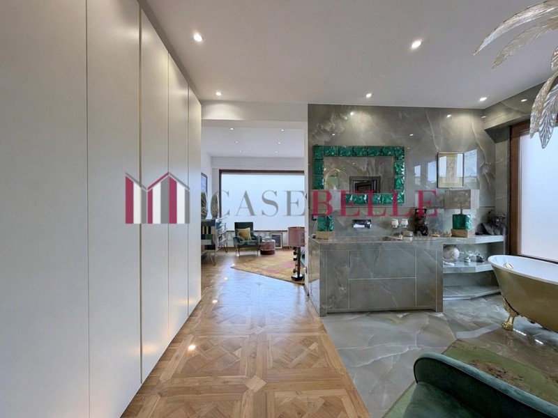 L'ingresso introduce direttamente in un ampio living di rappresentanza, caratterizzato da una straordinaria luminosità naturale garantita dalla tripla esposizione. Gli spazi sono stati progettati per valorizzare ogni dettaglio: finiture ricercate, giochi di luce integrati, materiali di pregio e soluzioni architettoniche che conferiscono carattere e identità all'ambiente.