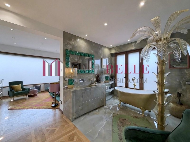 La zona notte, ben disimpegnata, assicura privacy e comfort. Qui troviamo una camera singola e una camera matrimoniale di grande fascino, impreziosita da una vasca e lavabo a vista che richiamano atmosfere di suite alberghiera, con servizi separati. Un secondo bagno, dotato di vasca, serve la restante parte dell'abitazione.