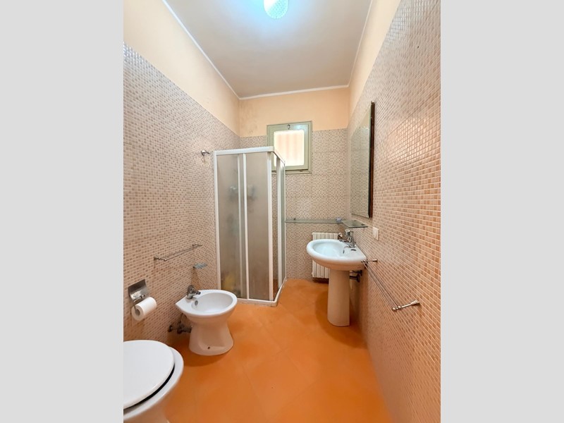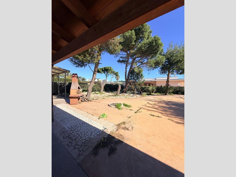 Il grande giardino, in parte pavimentato e in parte caratterizzato da una pineta privata, crea un’atmosfera fresca e naturale, ideale per chi cerca un’oasi verde a due passi dalla spiaggia. La proprietà dispone inoltre di garage, doppio ingresso e possibilità di parcheggio interno, caratteristiche rare e preziose in zona.