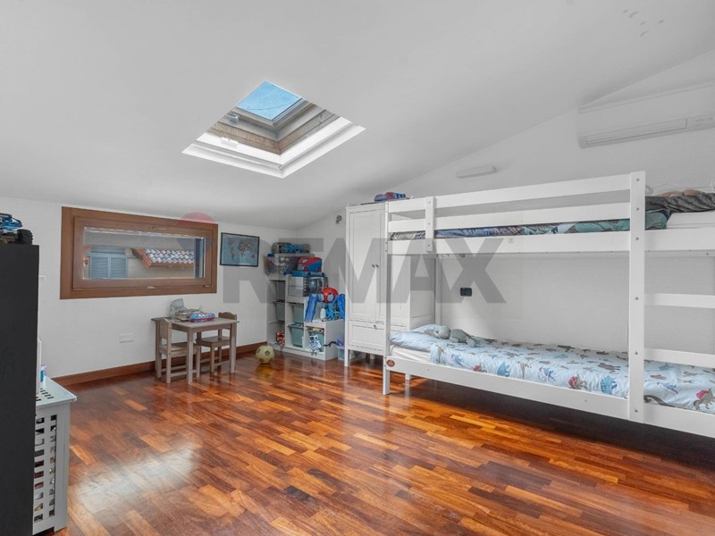 Una comoda scala interna conduce al piano mansardato, dove troviamo due ambienti versatili, balcone, oltre a una pratica lavanderia con velux.