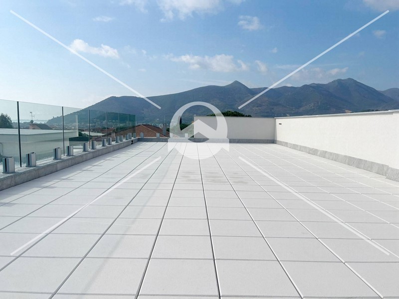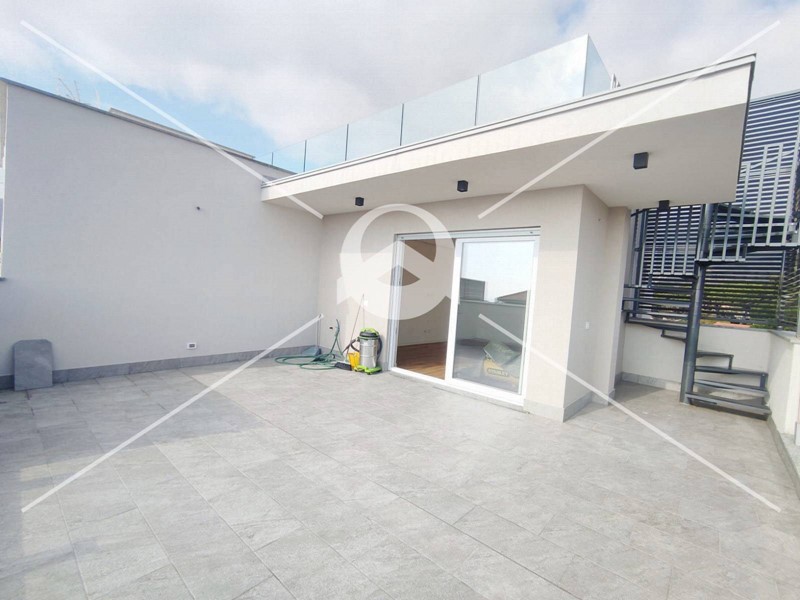 L'ampia terrazza / solarium vivibile, raggiungibile tramite scala privata, offre una splendida vista sul panorama circostante e permette di trascorrere piacevoli serate in compagnia di parenti ed amici. La predisposizione per una cucina estiva, zona solarium e mini piscina rendono questo ambiente Unico.