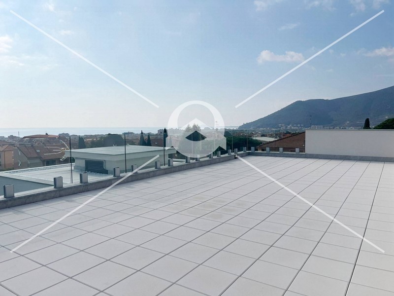 A soli 800 mt dal mare, in posizione dominante e strategica, proponiamo in vendita Esclusivo Attico, in contesto di nuova costruzione, sito al terzo piano con ascensore, composto da ingresso su soggiorno con angolo cottura generoso, due camere da letto, due bagni con doccia e finestra, terrazza e due balconate vivibili vista mare e monti.