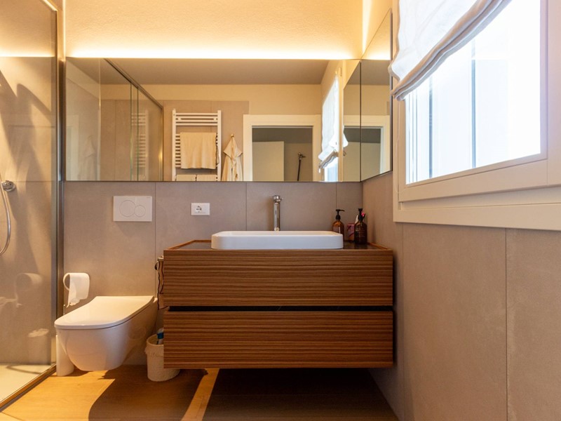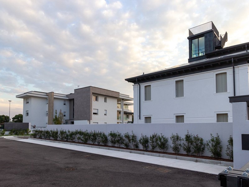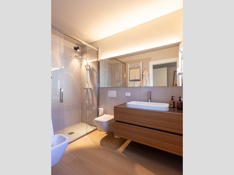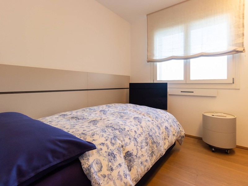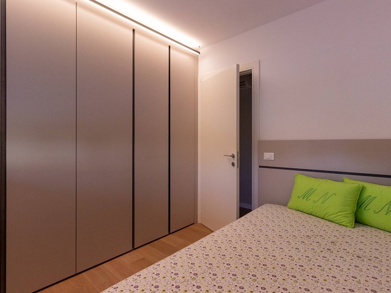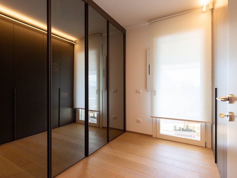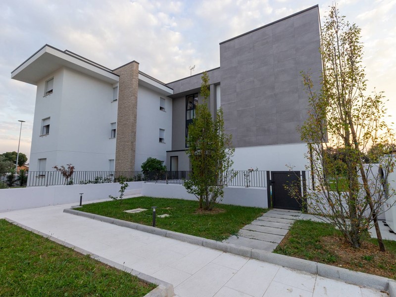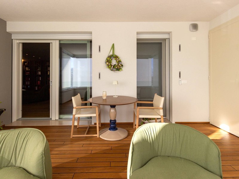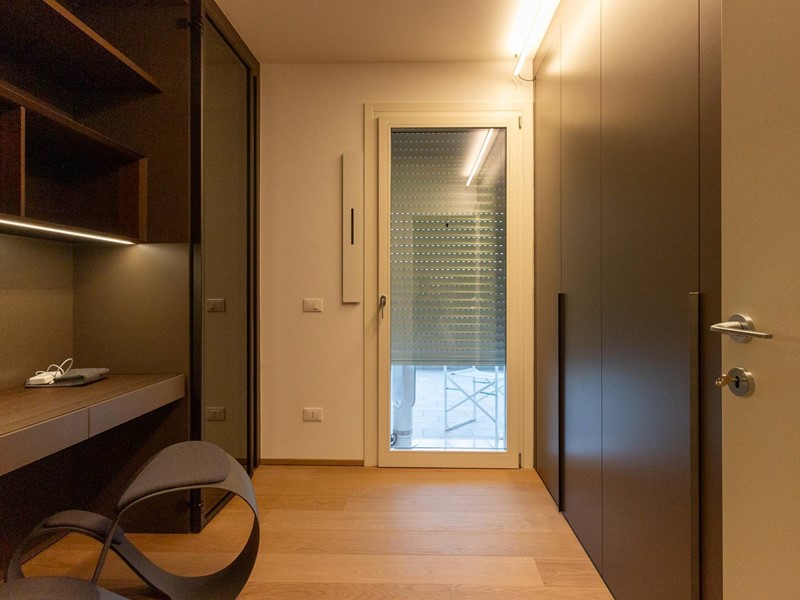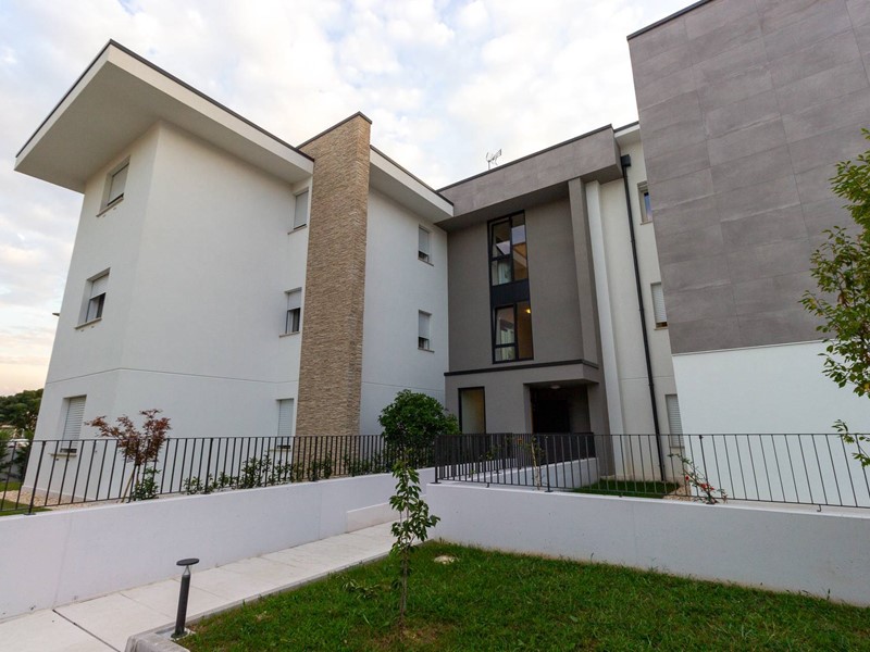 L'immobile, all'interno di un residence privato, è sito al primo piano ed è servito da ascensore. Presenta una metratura di mq. 123 e si sviluppa in: ingresso, zona giorno con cucina/soggiorno e sala da pranzo openspace con accesso diretto alla comoda terrazza di mq. 22 (resa un'estensione della zona giorno grazie all'intelligente chiusura tramite vetrate mobili che la rendono fruibile in qualsiasi stagione) e completa di vano tecnico ad uso lavanderia, disimpegno notte, 2 camere singole di cui una con accesso al terrazzo e 2 bagni entrambi finestrati con doccia di cui uno dedicato alla camera matrimoniale. Il tutto è completato da garage di mq. 35 con cantina di mq. 7 all'interno dello stesso e posto auto esterno assegnato. L'immobile è in classe energetica A4 e presenta cappotto, infissi in legno con tripli vetri, il pavimento è in legno con riscaldamento a pavimento centralizzato con caldaia a pompa di calore funzionante con impianto fotovoltaico, impianto dell'aria condizionata sia per la zona giorno che per la zona notte, impianto di ventilazione meccanica, tapparelle elettriche, portoncino blindato, impianto di allarme e video citofono. Le spese condominiali sono comprensive di tutto ad esclusione della corrente personale.