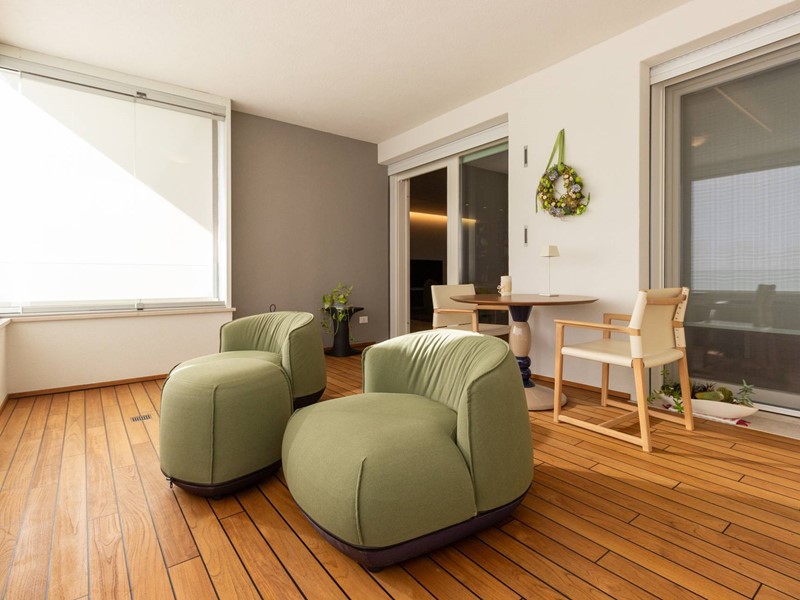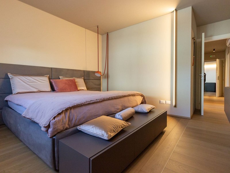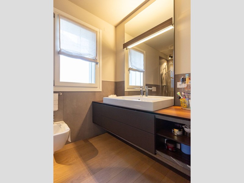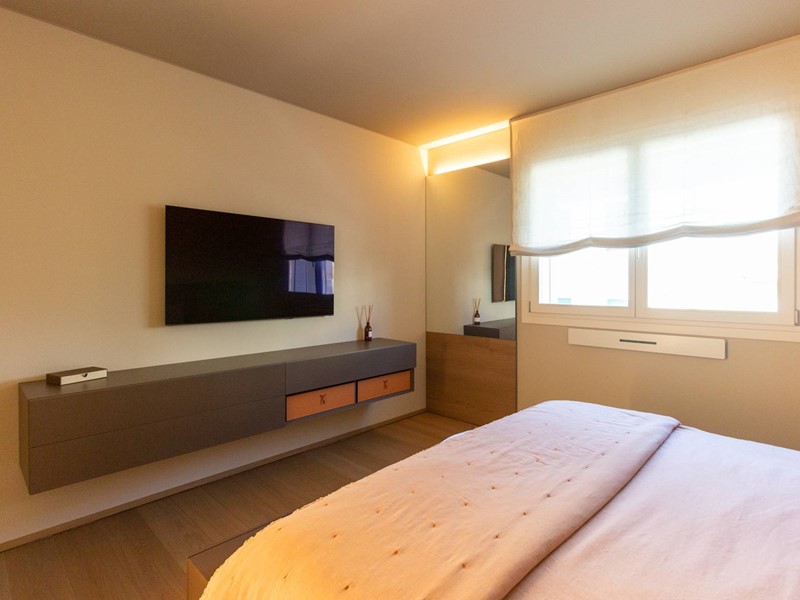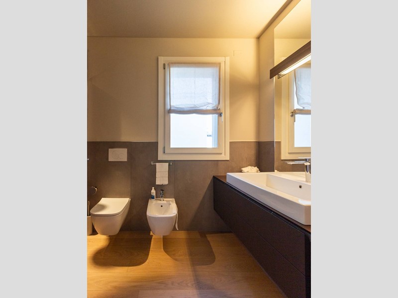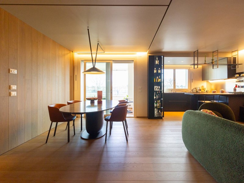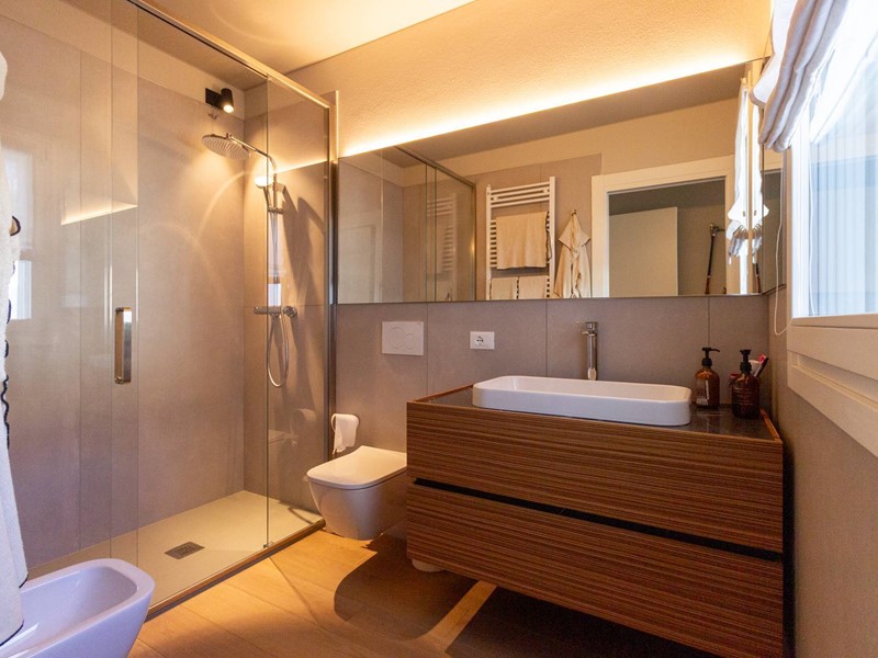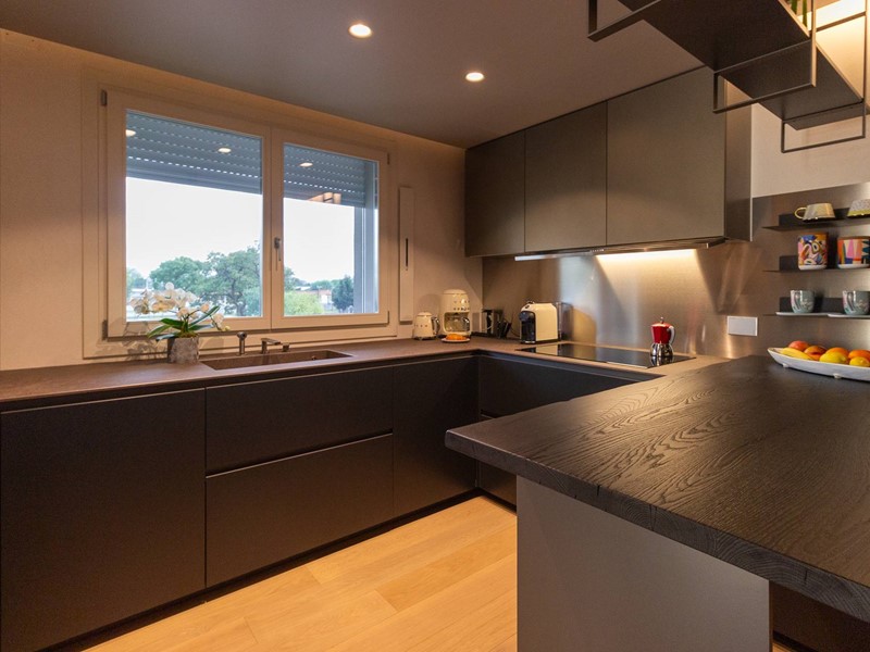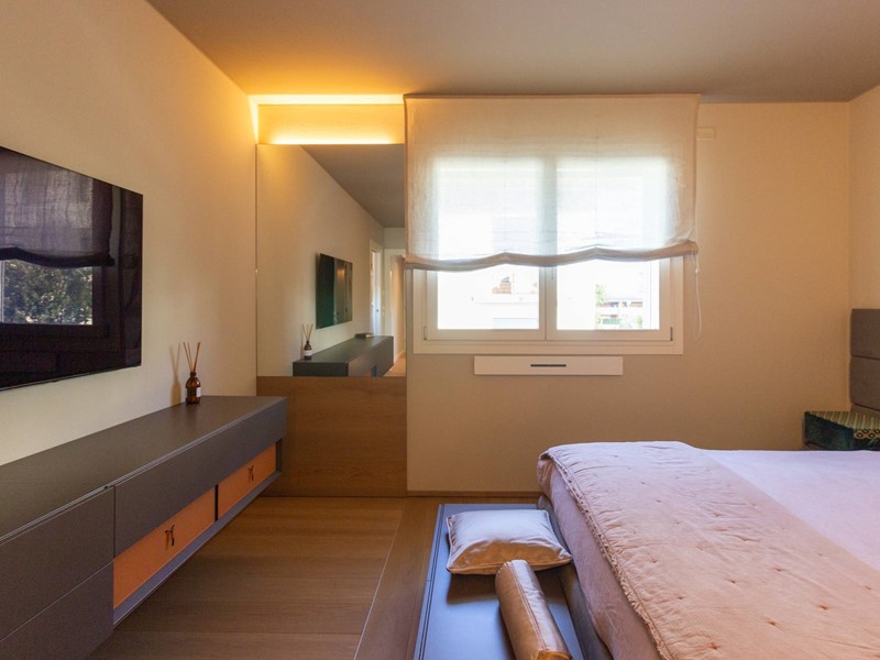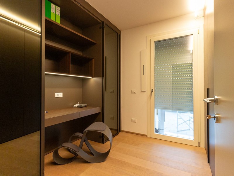 L'immobile, all'interno di un residence privato, è sito al primo piano ed è servito da ascensore. Presenta una metratura di mq. 123 e si sviluppa in: ingresso, zona giorno con cucina/soggiorno e sala da pranzo openspace con accesso diretto alla comoda terrazza di mq. 22 (resa un'estensione della zona giorno grazie all'intelligente chiusura tramite vetrate mobili che la rendono fruibile in qualsiasi stagione) e completa di vano tecnico ad uso lavanderia, disimpegno notte, 2 camere singole di cui una con accesso al terrazzo e 2 bagni entrambi finestrati con doccia di cui uno dedicato alla camera matrimoniale. Il tutto è completato da garage di mq. 35 con cantina di mq. 7 all'interno dello stesso e posto auto esterno assegnato. L'immobile è in classe energetica A4 e presenta cappotto, infissi in legno con tripli vetri, il pavimento è in legno con riscaldamento a pavimento centralizzato con caldaia a pompa di calore funzionante con impianto fotovoltaico, impianto dell'aria condizionata sia per la zona giorno che per la zona notte, impianto di ventilazione meccanica, tapparelle elettriche, portoncino blindato, impianto di allarme e video citofono. Le spese condominiali sono comprensive di tutto ad esclusione della corrente personale.