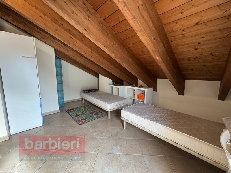 Salendo al secondo piano mansardato si accede alla zona notte, composta da due camere da letto e un secondo bagno, soluzione perfetta per garantire comfort e privacy a tutta la famiglia.