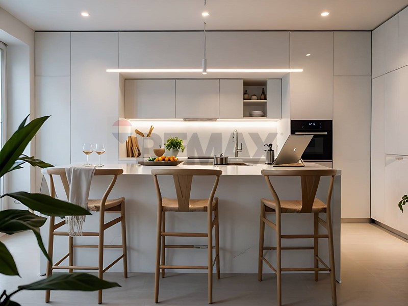 Lampia zona giorno con cucina a vista è un ambiente perfetto per la vita quotidiana e per accogliere gli ospiti. La grande porta finestra scorrevole di 4 metri consente di godere della luminosità e della continuità tra linterno e lampio terrazzo coperto di 16 mq, dove puoi goderti la serenità del tuo spazio esterno in totale tranquillità.
