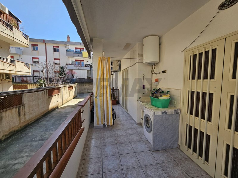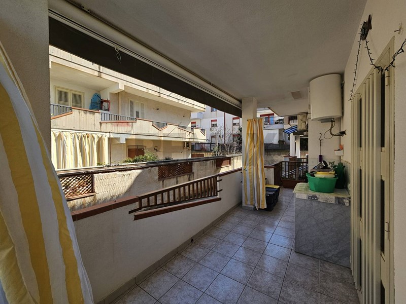 Limmobile è così composto: l'ingresso si apre su un ampio salone che permette di creare una zona living, una cucina abitabile con una porta-finestra che conduce a un balcone semi-perimetrale che circonda metà dell'appartamento. Sono presenti due camere da letto, anch'esse con balconi, due servizi con doccia e un ripostiglio. Le rifiniture sono di buona qualità; l'immobile è dotato di infissi in alluminio e condizionatori sia in cucina che in camera da letto.
