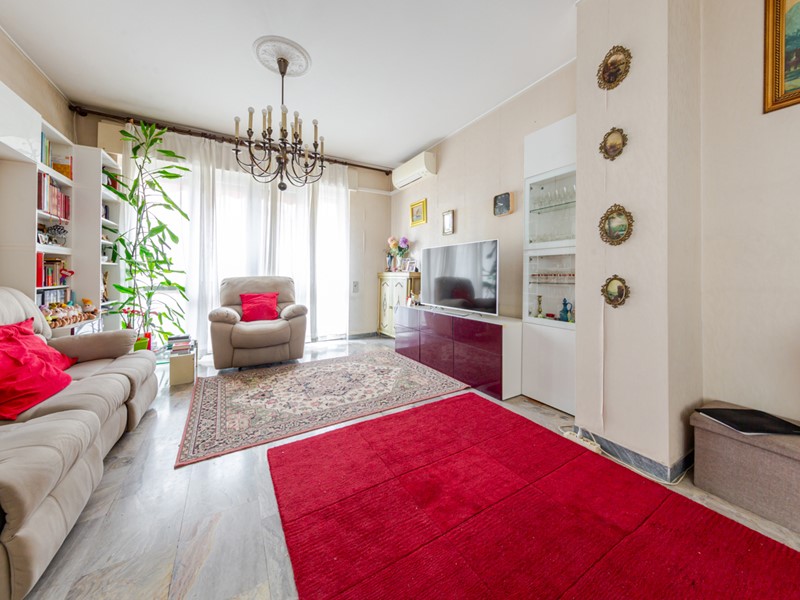 L'appartamento, situato al primo piano con doppia esposizione angolare, risulta composto da: ingresso, soggiorno doppio con accesso alla balconata, cucina abitabile, disimpegno notte, 2 ampie camere da letto matrimoniali, doppi servizi, ripostiglio e cantina.