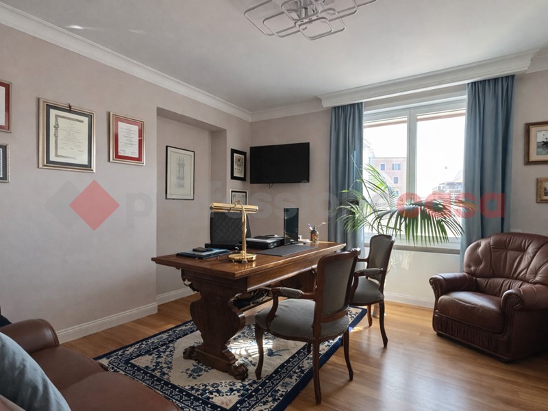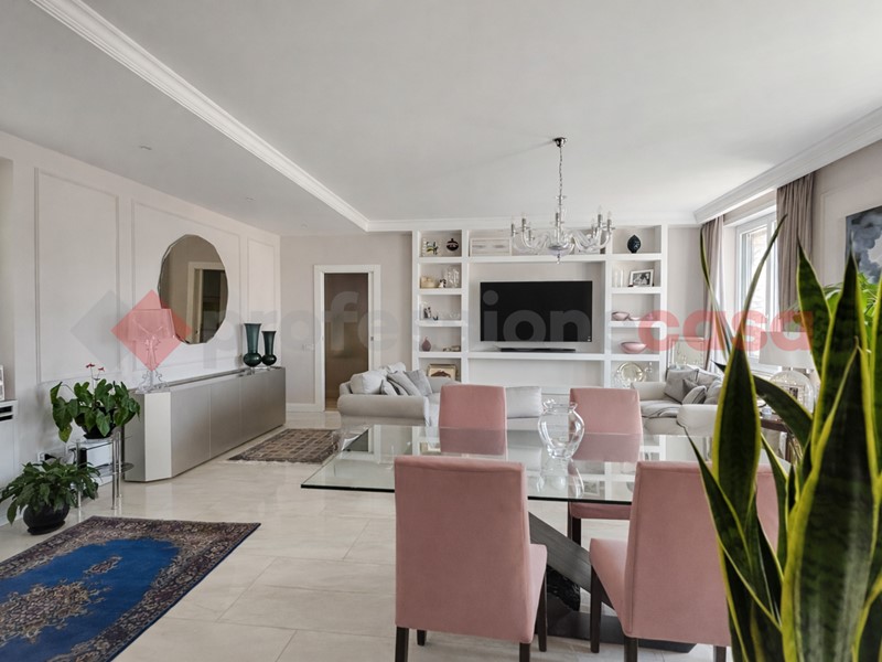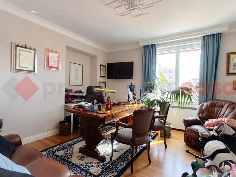 La tripla esposizione garantisce luce naturale costante e ambienti ariosi, con affacci che valorizzano ogni spazio della casa. Gli interni colpiscono per equilibrio e qualità delle finiture: il salone è ampio e accogliente, impreziosito da raffinate modanature in gesso che donano carattere e personalità senza appesantire lo stile, mantenendo un'eleganza sobria e contemporanea.