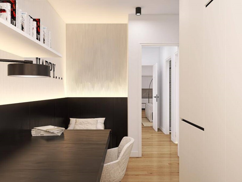 Interni spaziosi e luminosi, valorizzati dalla cura del dettaglio e dalla selezione di materiali sostenibili di alta qualità, in un quartiere abitativo rilassante e silenzioso, ideale per la serenità e il benessere della tua famiglia.