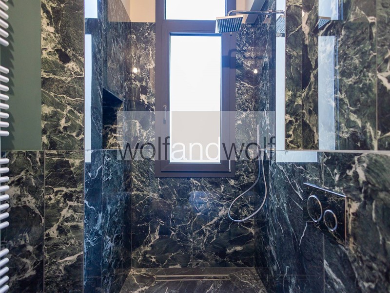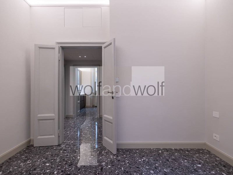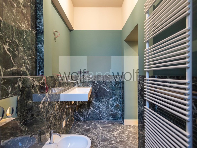 Ottime le finiture interne, la completa ristrutturazione conservativa ha fatto emergere le belle caratteristiche architettoniche del periodo. La pavimentazione è in parquet di rovere (soggiorno e camera padronale), mentre il Gress (finitura marmo e palladiana) è presente in cucina e nella camera studio e nei bagni, gli infissi sono in legno con vetrocamera, tapparelle meccanizzate e zanzariere, il riscaldamento è autonomo con termosifoni in ghisa originali (restaurati), l'aria condizionata è canalizzata.