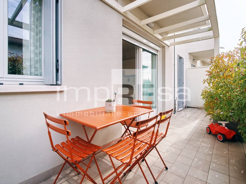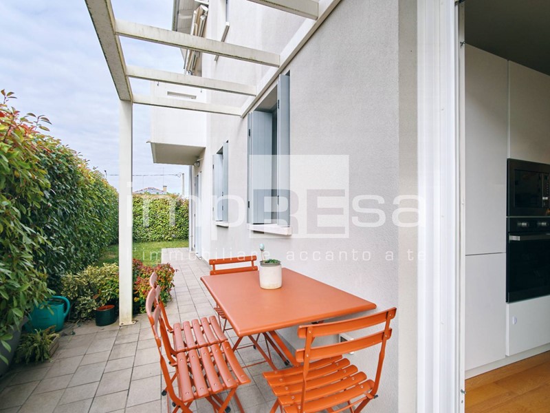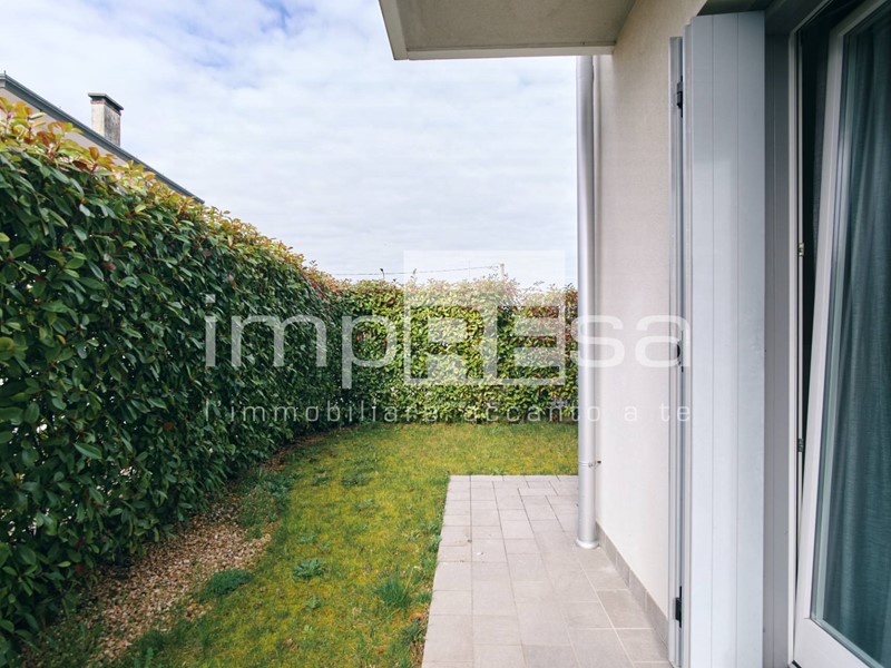 Carbonera, Biban, posizione centrale, vendesi in moderna e piccola palazzina, appartamento al piano terra in classe A, no gas, composto da: ingresso con angolo cottura, disimpegno, camera matrimoniale, camera singola, bagno con doccia, lavanderia con wc, ripostiglio attiguo, giardino privato.