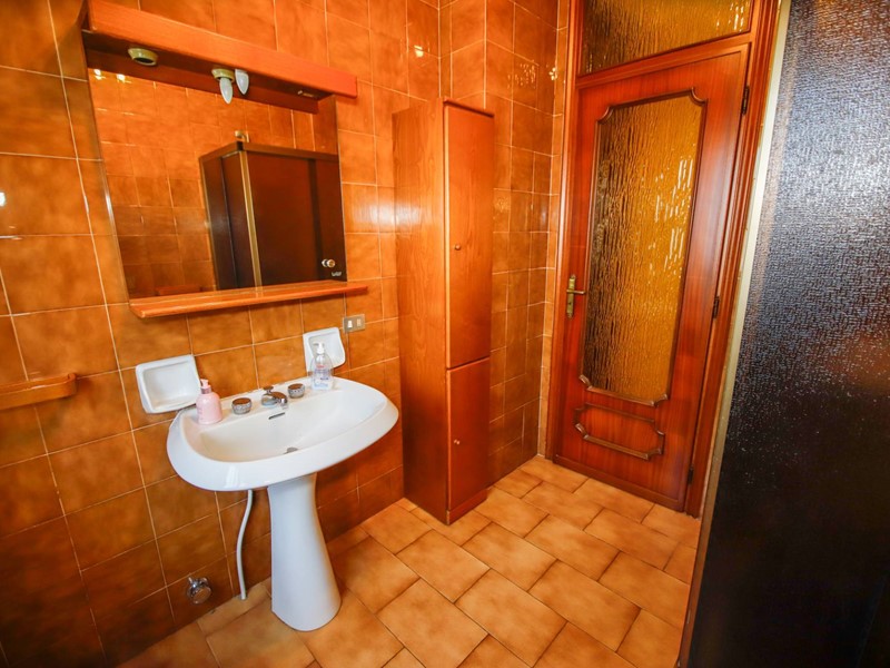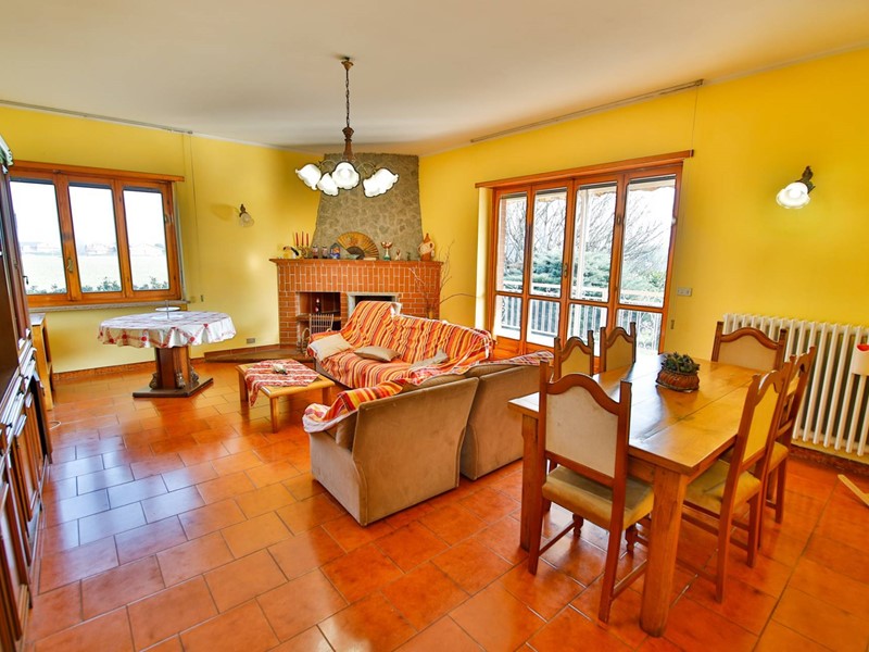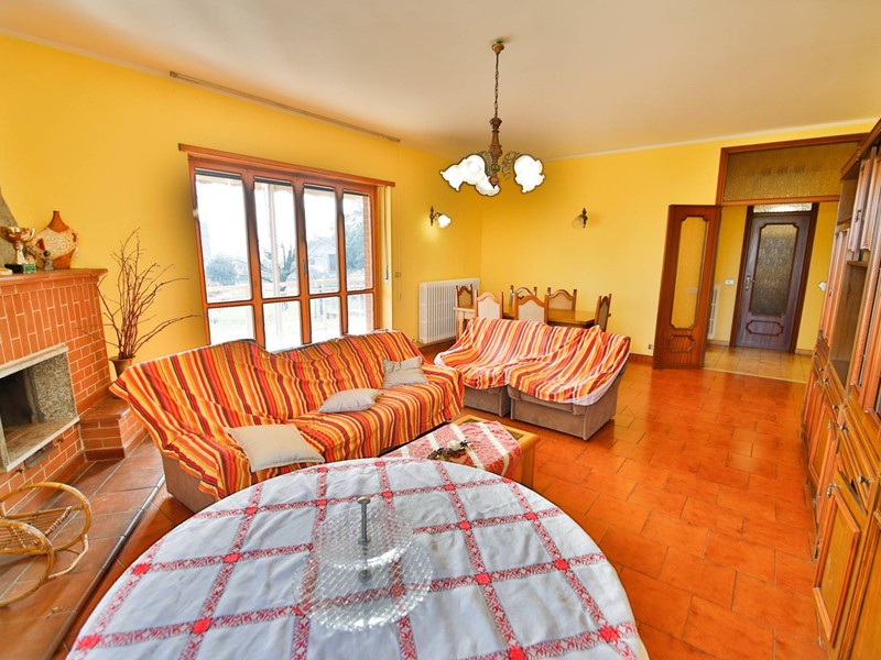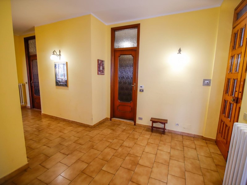 Lingresso conduce a uno spazioso disimpegno che accompagna allampio e luminoso salone, valorizzato dalla presenza del camino e dallaccesso al terrazzo tramite porta-finestra.