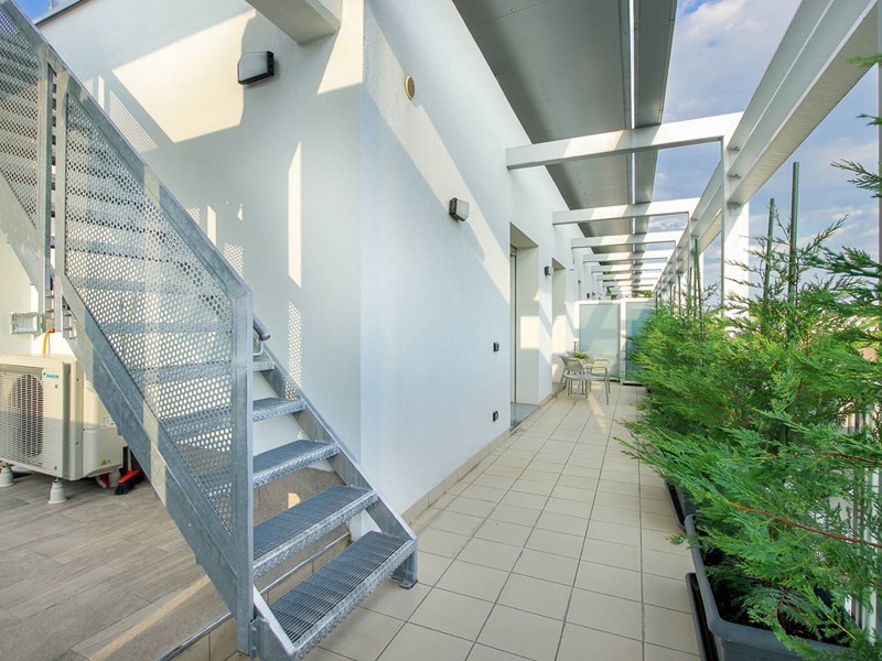 'Attraverso una scala esterna privata, si accede al vero gioiello della proprietà: un terrazzo sovrastante con una vista mozzafiato sulla città. Uno spazio esclusivo dove la vostra immaginazione non ha limiti: