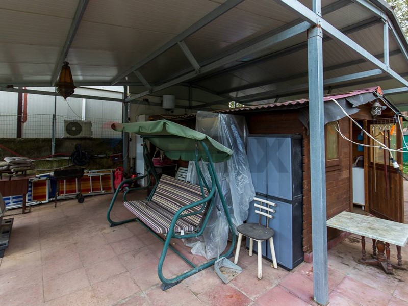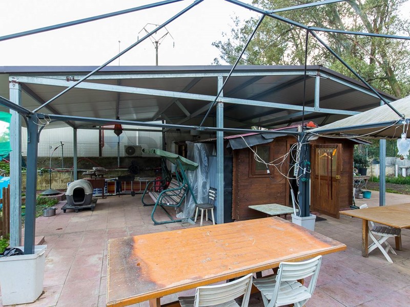 Una zona terrazzata coperta, attualmente aperta, che può essere chiusa per ricreare una comoda zona giorno con cucina e salotto