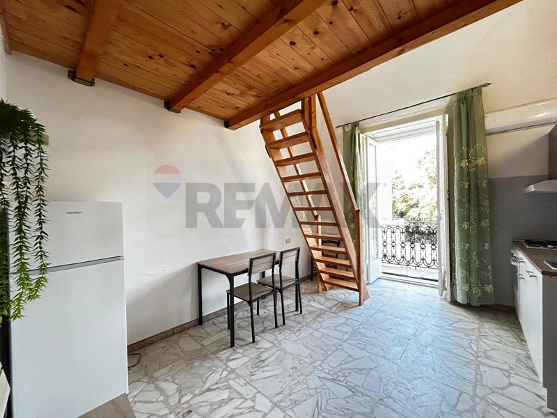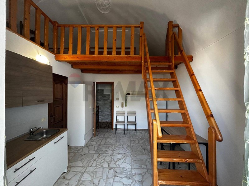 Monolocale con soppalco in legno, angolo cottura e servizi