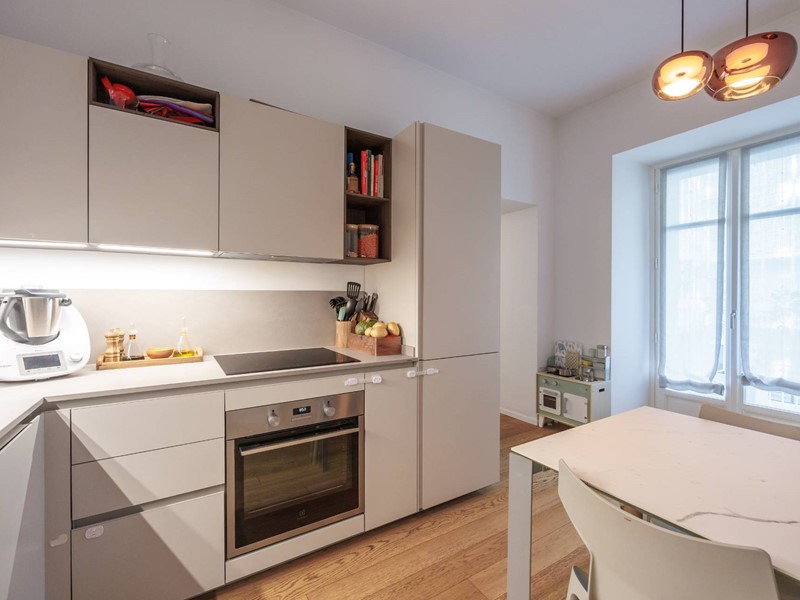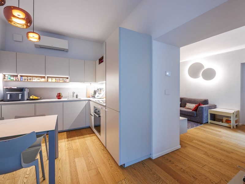 La ristrutturazione, curata nei minimi dettagli, valorizza ogni ambiente grazie al parquet uniforme, agli infissi con doppio vetro camera, allaria condizionata e al riscaldamento a pavimento centralizzato con termostato per una gestione ottimale.