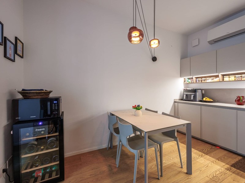 Limmobile si apre su unaccogliente zona giorno con soggiorno luminoso, affiancato da una cucina abitabile; la zona notte comprende due camere da letto e doppi servizi, progettati con materiali e finiture di pregio.