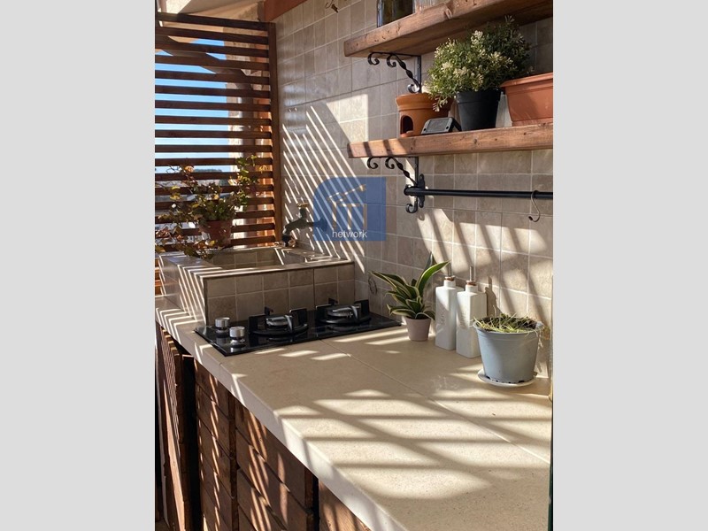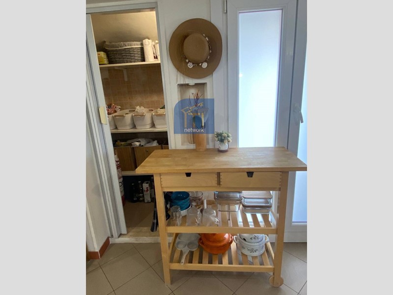 L'appartamento, posto al secondo ed ultimo piano, è composto da ampio salone luminoso con angolo cottura con porta finestra che conduce al terrazzo dotato di cucinotto e zona relax, due camere matrimoniali e servizio finestrato con comodo box doccia. Completa la proprietà un box, anch'esso ristrutturato, adibito come monolocale con angolo cottura e servizio con box doccia.