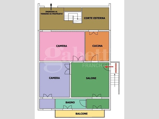 L'immobile si sviluppa su una superficie abitativa di circa 90 mq ed è così composto: ingresso in ampio salone living con caratteristico soffitto a volta con un'altezza max di 4.4 mt, cucina abitabile con accesso alla corte esterna terrazzata dalla quale è possibile accedere al terrazzo di copertura, due ampie camere da letto, comodo ripostiglio e servizio finestrato.