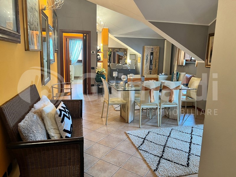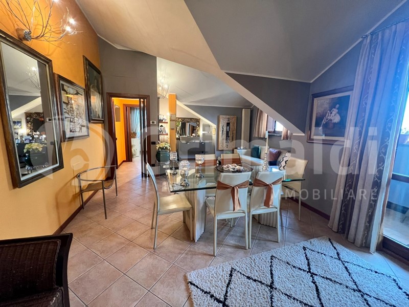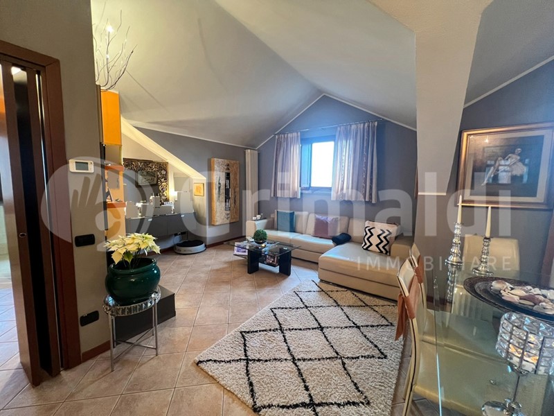 Opera (Mi). Al quinto e ultimo piano di uno stabile di recente costruzione proponiamo ottimo appartamento mansardato. Entrando si viene accolto da una sontuosa zona giorno che conversazione gli ambienti pr incipali pur mantenendoli distinti, quindi ingresso, cucina a vista e soggiorno doppio, ognuno con le proprie caratteristiche e funzionalità, si sposano in un unico ambiente confortevole armoniosamente collegato dal gioco dei soffitti mansardati, che aggiungono il tocco di classe alla particolarità dell'immobile. Il balcone loggiato consente di trascorrere del tempo all'aperto in totale privacy. Dal disimpegno si accede alla camera matrimoniale, molto luminosa in quanto dotata di doppia finestra, e al bagno, anch'essi aggraziati dalle particolari prospettive dei soffitti mansardati. Questo immobile offre comfort, funzionalità e versatilità: attualmente è vissuto come bilocale ma è trasformabile in trilocale senza rinunciare alla comodità. Costruito nel 2005, lo stabile dispone di ascensore, giardino condominiale, accesso per disabili e videocitofono. Ideale per chi cerca un'abitazione accogliente e ottimamente rifinita. Possibilità di acquisto del box doppio a parte dal prezzo, richiesta euro 49.000. Solo per amanti del bello!!!!