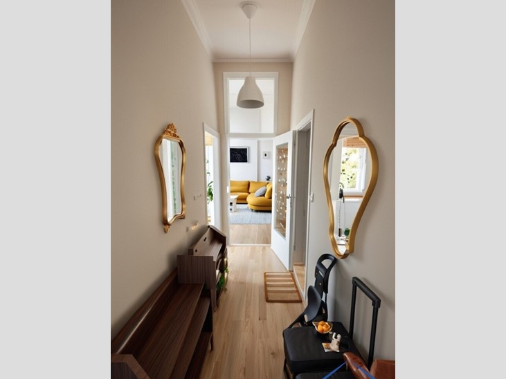 L’ingresso si apre su un soggiorno particolarmente luminoso, ideale per i momenti di relax, seguito da una comoda cucina abitabile. La zona notte offre due camere spaziose e un bagno finestrato. Completa il tutto un balcone vivibile, perfetto per godersi un po’ di aria aperta.