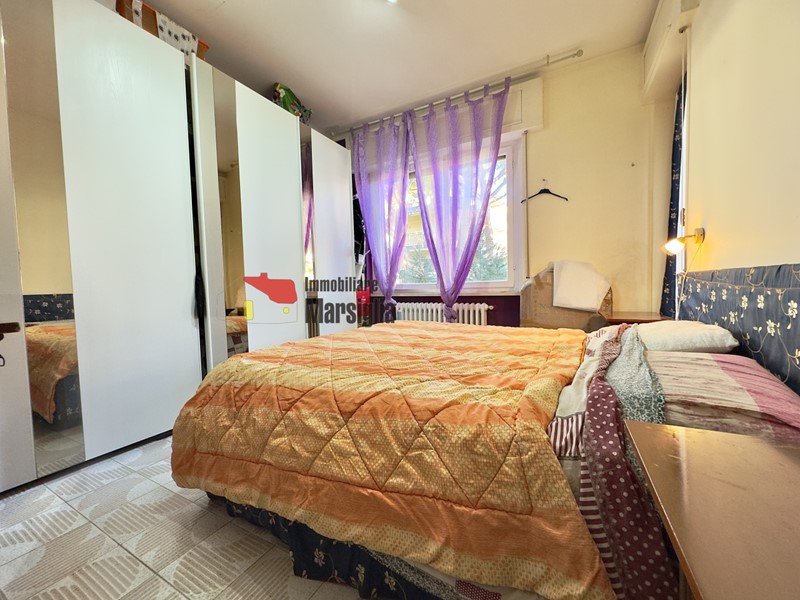 L’ingresso si apre su un disimpegno che conduce ai vari locali: soggiorno, cucina separata, camera matrimoniale e bagno finestrato. Dal soggiorno e dalla camera si accede a un ampio balcone mentre la cucina dispone di un secondo balcone di servizio.
