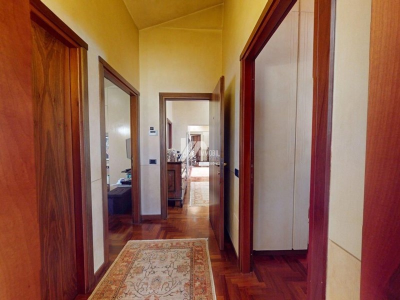 La soluzione è composta da un ampio ingresso, due eleganti saloni, una spaziosa cucina abitabile, sei camere da letto, tre bagni e due balconi. Completano la proprietà, al piano seminterrato, due cantine e due garage.