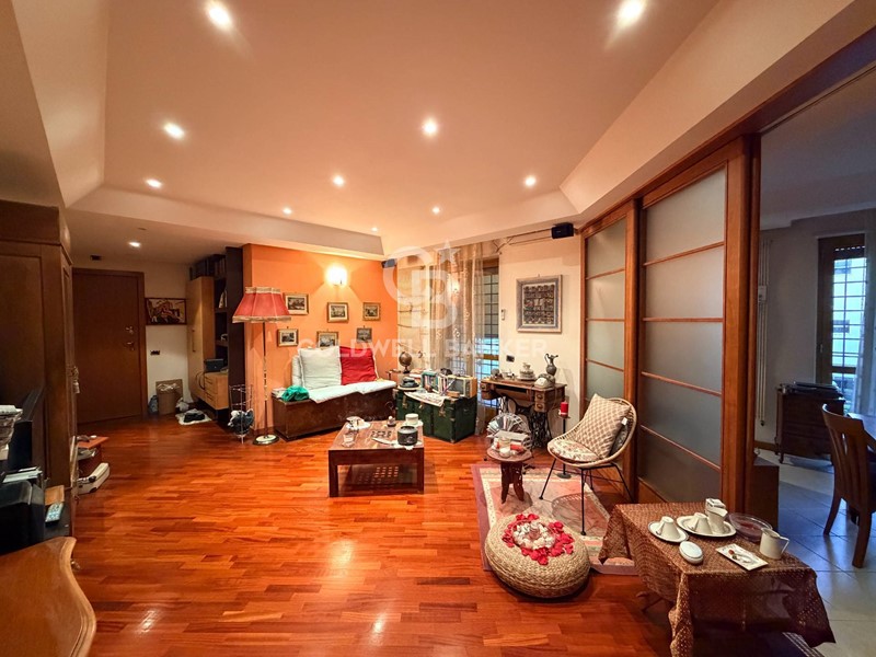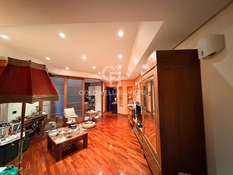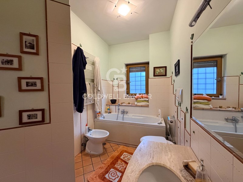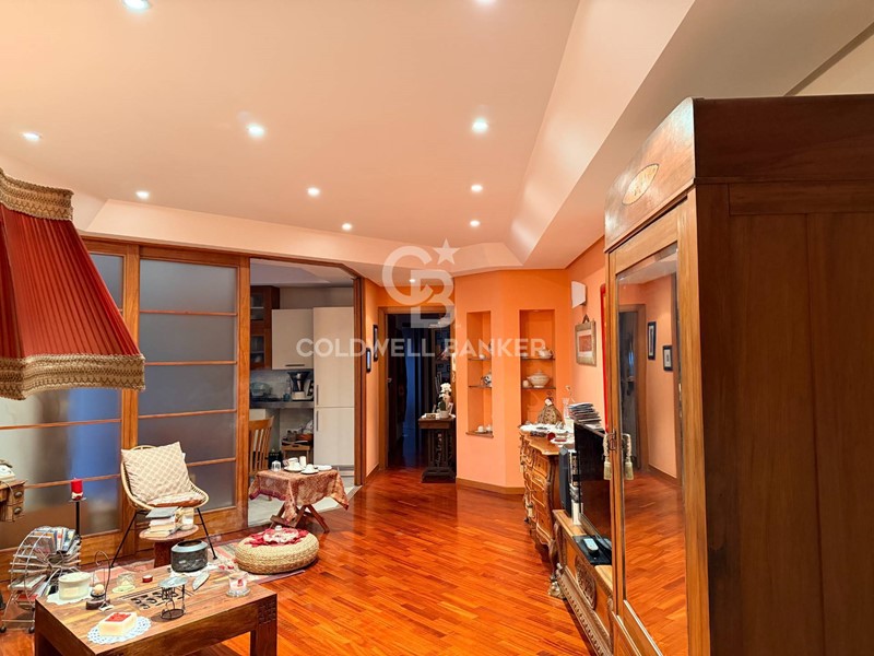 L'ingresso dell'abitazione apre su un ampio salone di rappresentanza, un ambiente spazioso e luminoso che costituisce il vero cuore della casa, ideale per accogliere ospiti in un'atmosfera di sobria eleganza. La zona giorno è sapientemente completata da una cucina abitabile, capiente e funzionale, e da un primo bagno di servizio, dettaglio che aggiunge estrema praticità alla gestione quotidiana della casa. La distribuzione degli spazi è stata concepita con grande razionalità, separando nettamente l'area della convivialità dalla zona notte, garantendo così la massima riservatezza e una vivibilità d'eccellenza. Quest'ultima sezione della casa ospita due camere da letto dalle metrature generose, capaci di adattarsi a diverse configurazioni d'arredo, e un secondo bagno padronale rifinito con cura, creando un ambiente intimo e rigenerante per il riposo.