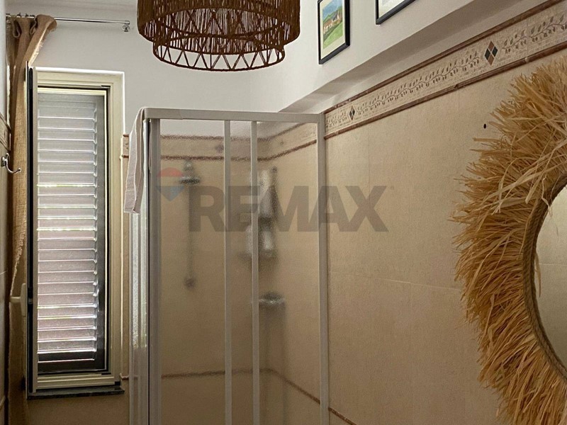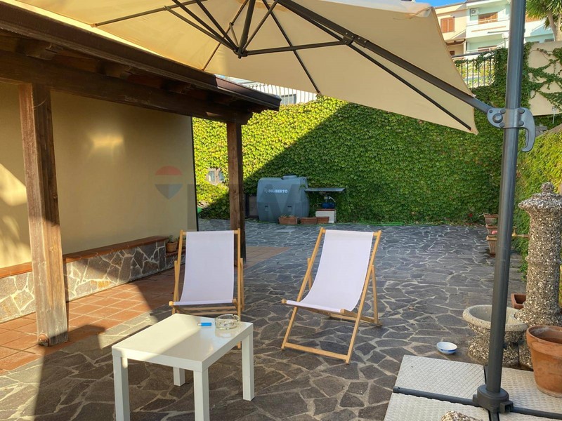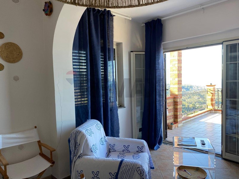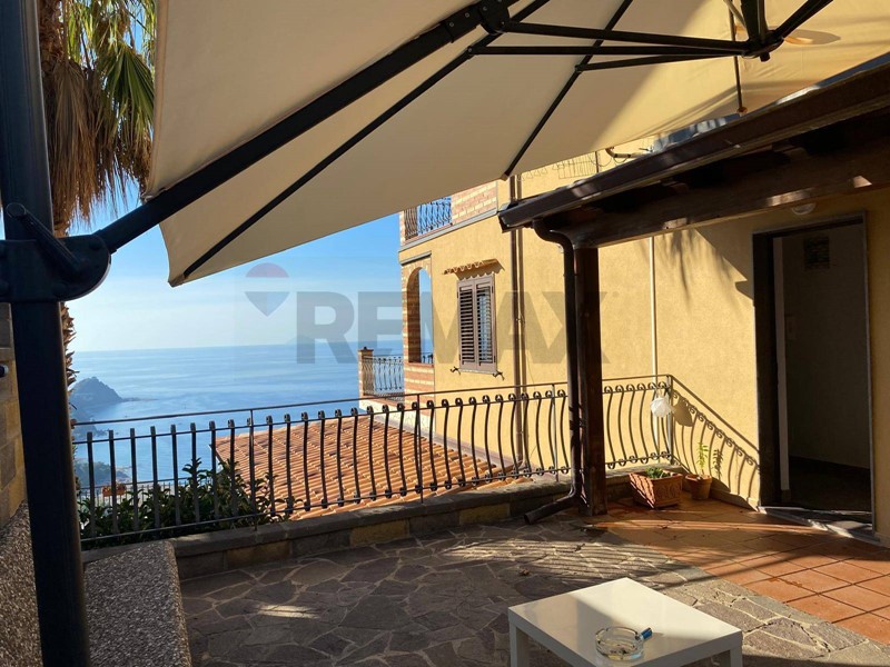 Ampio e luminoso appartamento composto da ingresso/disimpegno, due camere, un bagno, un ripostiglio e un comodo soggiorno/pranzo/cucina, che si apre su un grande terrazzo con straordinaria vista panoramica della costa tirrenica della Sicilia. L'appartamento viene venduto in gran parte arredato. Completa l'immobile una grande corte privata che, grazie alla presenza di un ingresso pedonale e di un ingresso carrabile, consente il parcheggio di più automobili. Nella porzione della corte prospiciente l'ingresso all'appartamento è anche presente una comoda tettoia per godere di piacevoli momenti all'aperto anche nel corso delle calde e assolate giornate estive.