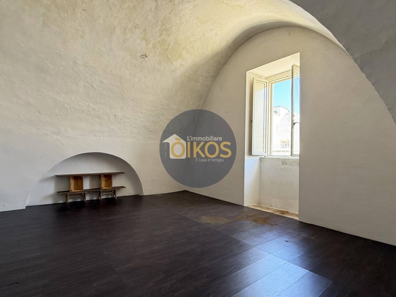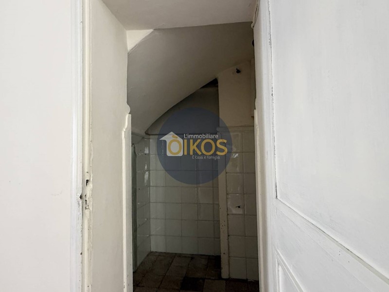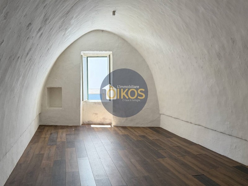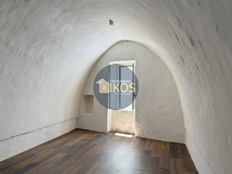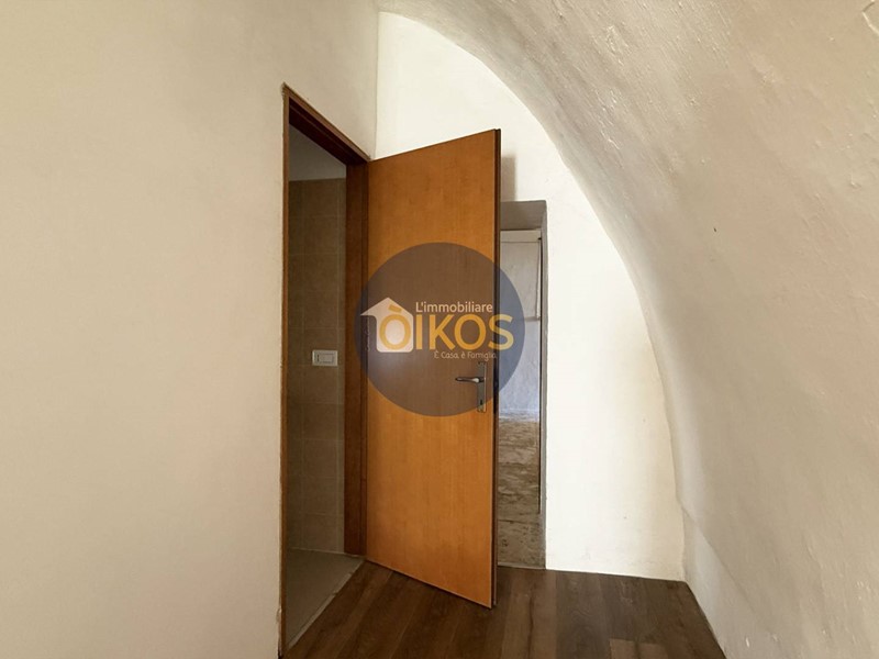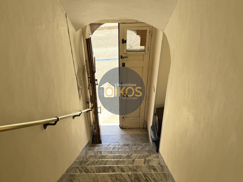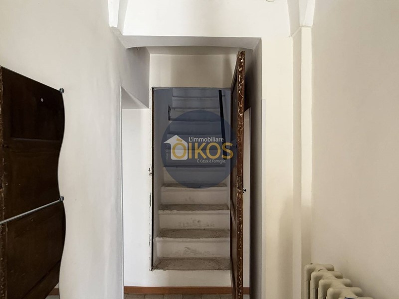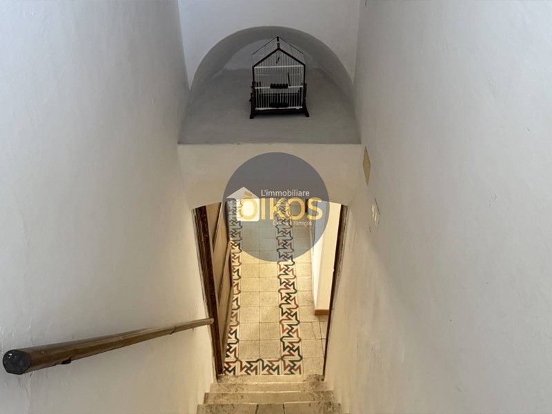 Una porta in legno in fondo al corridoio conduce alla scala interna che sale al piano superiore. Anche qui le caratteristiche architettoniche tipiche della zona, le volte a stella, continuano a raccontare la storia dellimmobile.