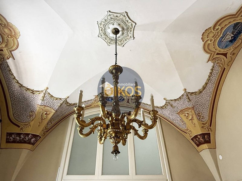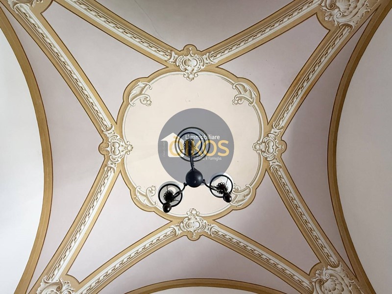 Alla destra del corridoio, una grande porta a vetri apre su un ampio e luminoso salone, impreziosito da splendide volte a stella decorate con affreschi. Latmosfera che si respira è quella di uneleganza senza tempo, ideale per accogliere e stupire.