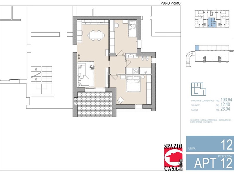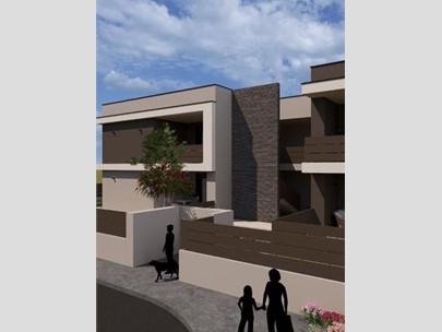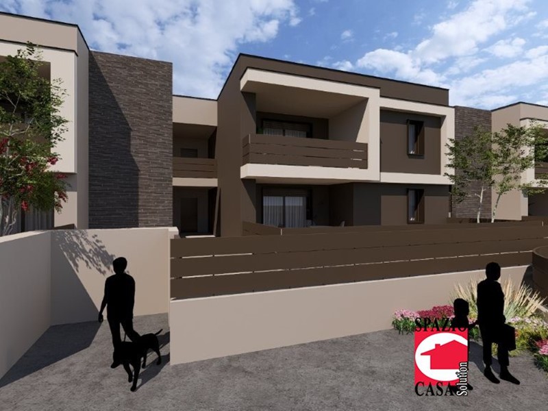 In costruendo contesto residenziale, proponiamo appartamento TRILOCALE posto al primo ed ultimo piano , ad alta efficienza energetica (prevista classe A), composta da soggiorno con zona cottura/pranzo e zona living, con affaccio sul loggiato vivibile, due camere da letto (matrimoniale e doppia) , bagno finestrato con antibagno attrezzato a lavanderia. Al piano interrato ampia autorimessa di oltre 25 mq.\nImmobile dotato di riscaldamento e raffrescamento a pavimento autonomi ,VMC ( Ventilazione meccanica controllata) autonoma, tapparelle elettriche, serremanti in PVC, pannelli fotovoltaici, ampissime scelte di pavimenti (anche parquet) e rivestimenti. consegna prevista primavera 2027. Minimo acconto al preliminare,saldo al rogito.\n - Maggiori Dettagli: Loggia, Porta blindata, Insonorizzazione, Predisposizione antifurto, Video citofono, Climatizzato