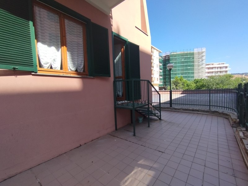 Andora, zona centrale, piazza del mercato, alloggio al piano rialzato con affaccio interno composto da: ingresso, soggiorno con angolo cottura, camera, bagno già ristrutturato, ripostiglio e ampio terrazzo angolare. Cantina