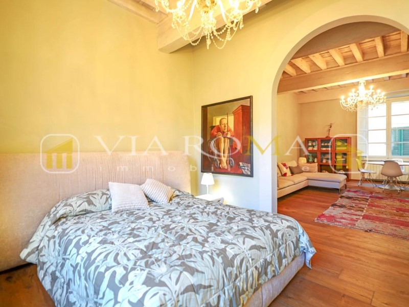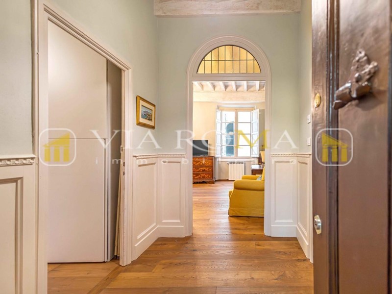 In pieno centro appartamento in palazzo storico del 1600, completamente restaurato, mantenendo le caratteristiche Lucchesi, si compone di ingresso, soggiorno, seconda sala con zona pranzo cucina completamente arredata, bagno di servizio con doccia, disimpegno zona notte due camere matrimoniali con bagno privato, e altra camera doppia. L'appartamento è stato restaurato con attenzione nel preservare le caratteristiche originali lucchesi. L'ampia sala e la sala da pranzo molto luminose vengono esaltate dagli splendidi soffitti a cassettone ottimamente restaurati. L'appartamento è dotato di impianti nuovi con le relative certificazioni. I pavimenti sono tutti di Parquet di prima scelta. I bagni sono tutti è tre finestrati. Aria condizionata.