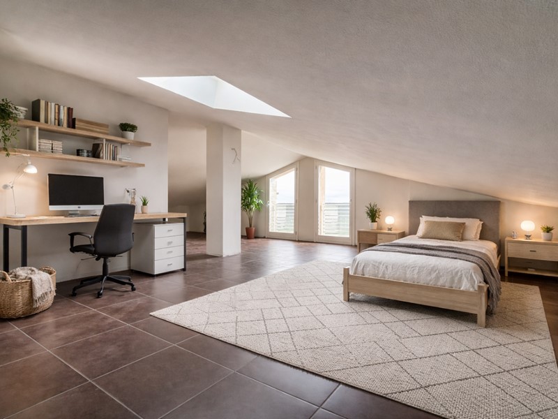 Fiore all’occhiello dell’abitazione è la grande mansarda, ideale come studio, stanza ospiti, area hobby o anche come quarta camera.
