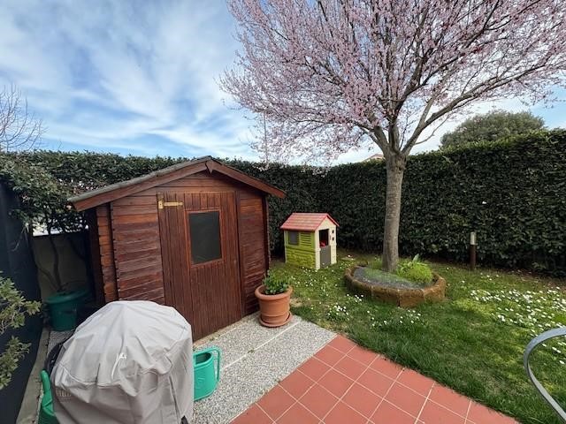 Dal cancello carrabile e pedonale si accede al giardino in parte verde ed in parte piastrellato!