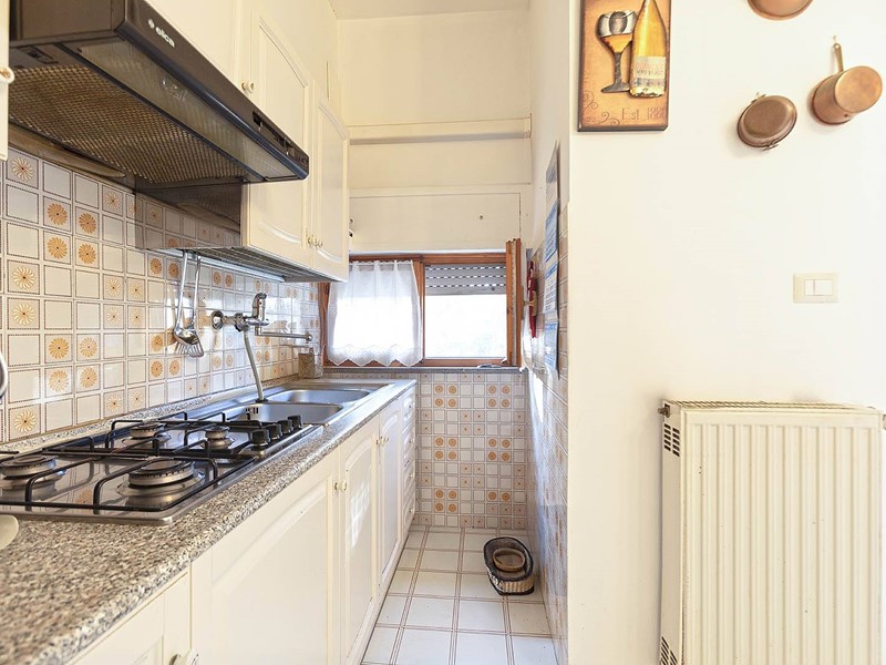 Labitazione si apre su un accogliente soggiorno con affaccio su balcone, perfetto per momenti di relax, e una cucina abitabile, anchessa servita da balcone.