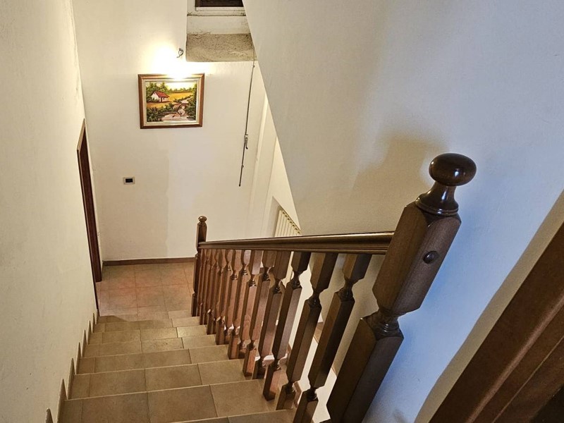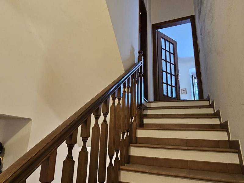 Una comoda scala ci conduce al primo piano dove troviamo un ampio soggiorno con camino e terrazzo con vista panoramica, cucina abitabile, due camere matrimoniali e due bagni.