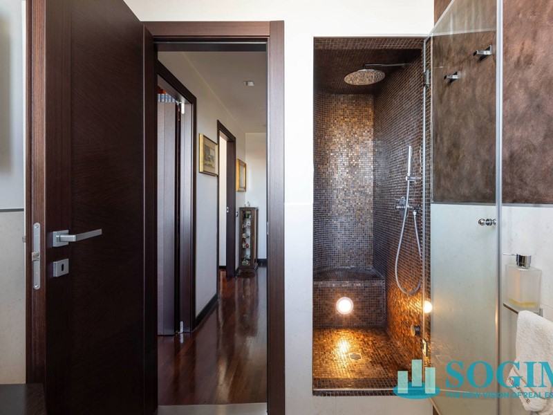 Dotazioni di pregio quali cucina Varenna e bagno turco in mosaico Bisazza qualificano ulteriormente limmobile.