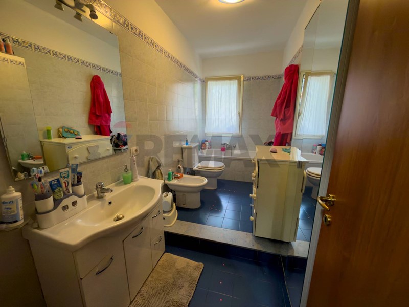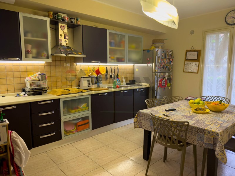 L'appartamento si presenta in ottime condizioni e si compone di ingresso su luminoso soggiorno, cucina abitabile, camera da letto e cameretta, bagno con vasca, lavanderia con doccia e doppio servizio, balcone e giardino (80mq circa).