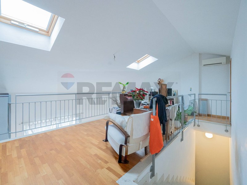 La scala interna ci porta al soppalco dove abbiamo un grande spazio da usufruire in base alle nostre neccessità, un secondo bagno con vasca, locale impianti e soffitta.