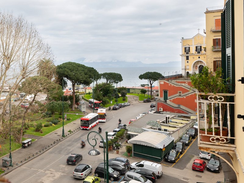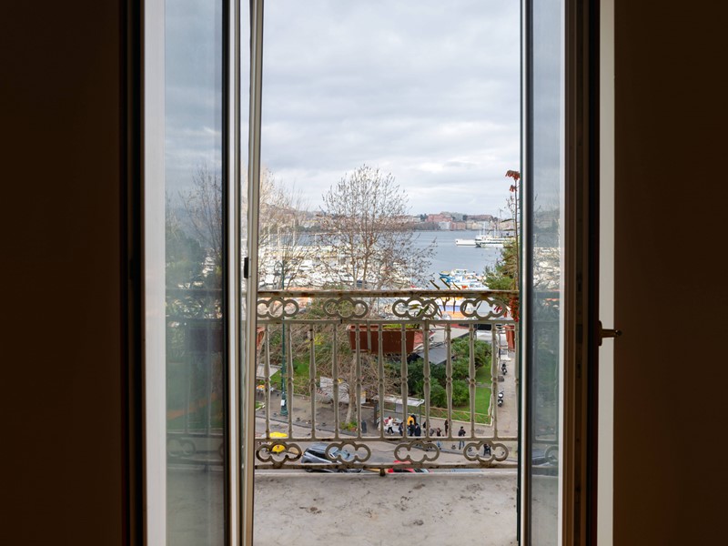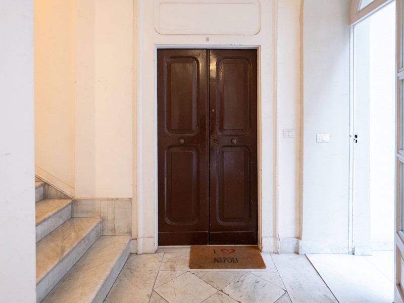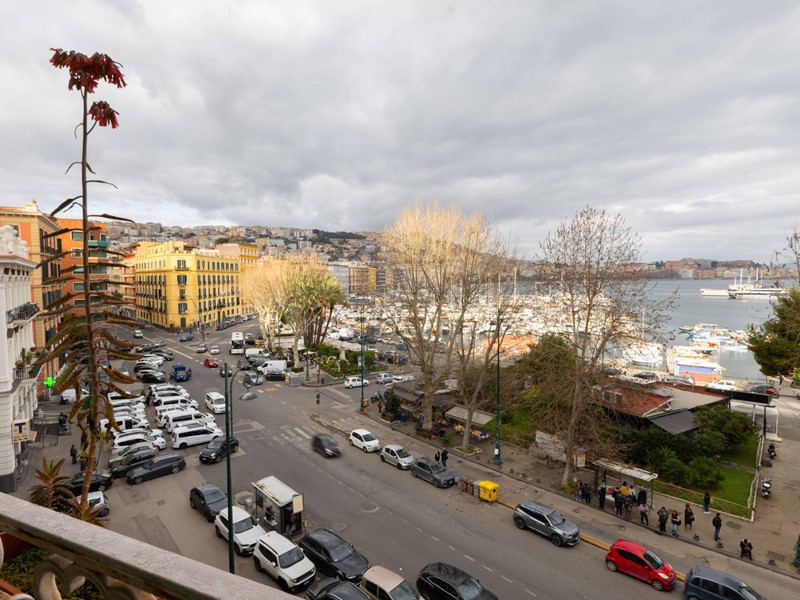 Lingresso introduce in un ampio disimpegno molto luminoso, valorizzato dalla presenza di due punti luce, che accompagna verso un salone di grandi dimensioni, ambiente di rappresentanza ideale, impreziosito da balcone e finestra con affaccio diretto sul lungomare di Napoli, con il mare letteralmente di fronte, regalando una vista frontale emozionante e senza eguali.
