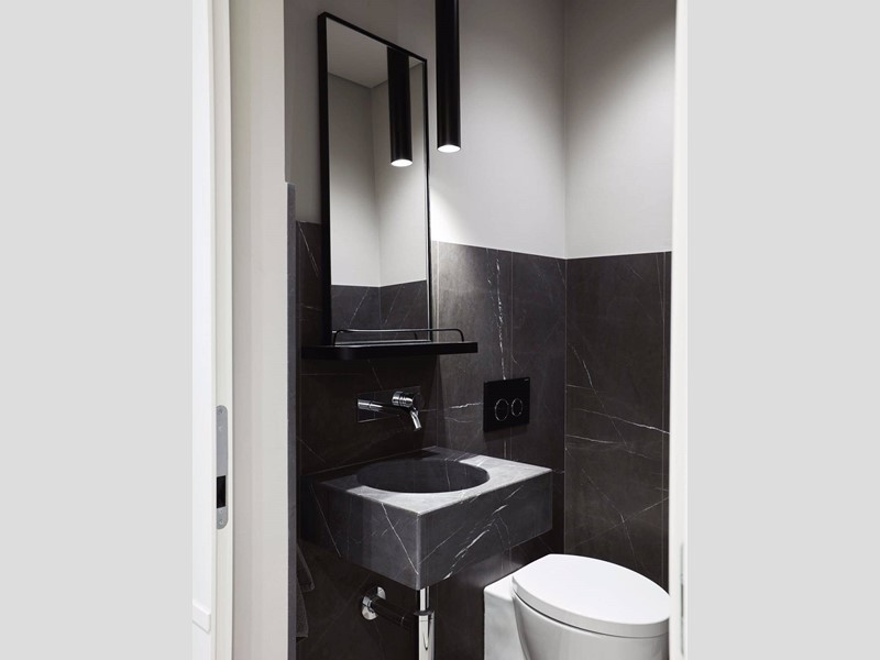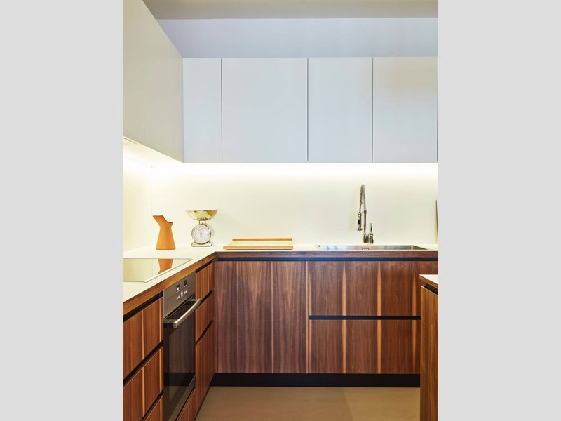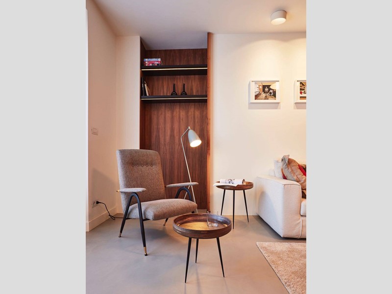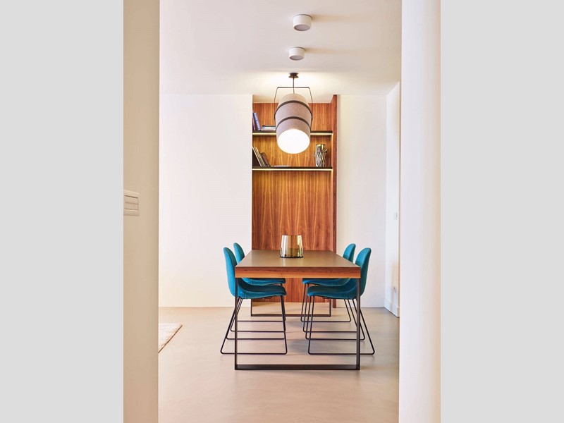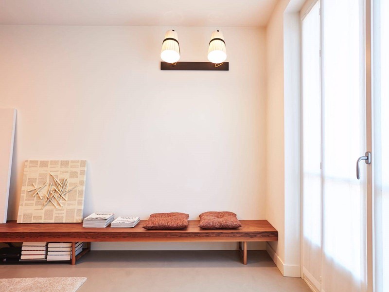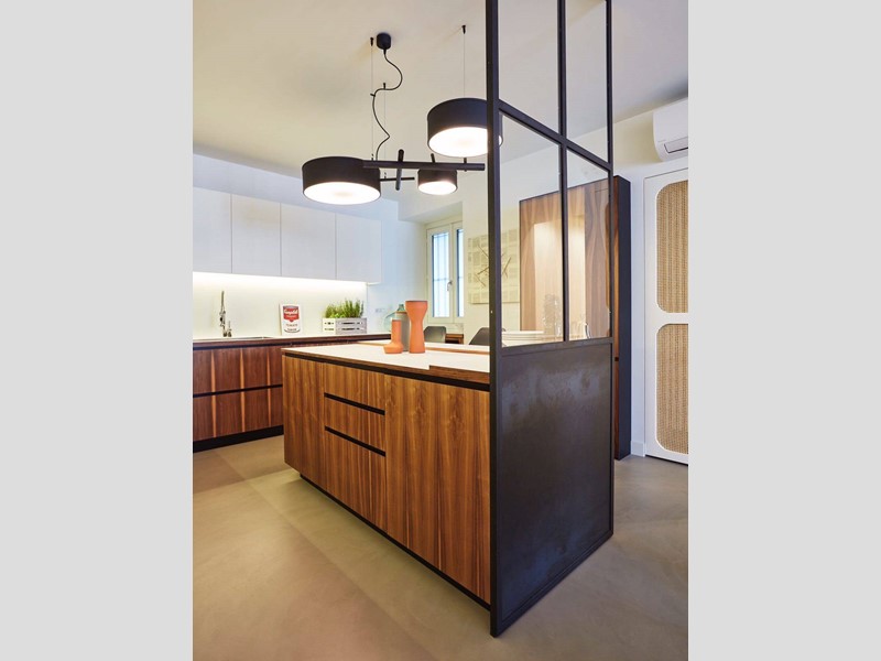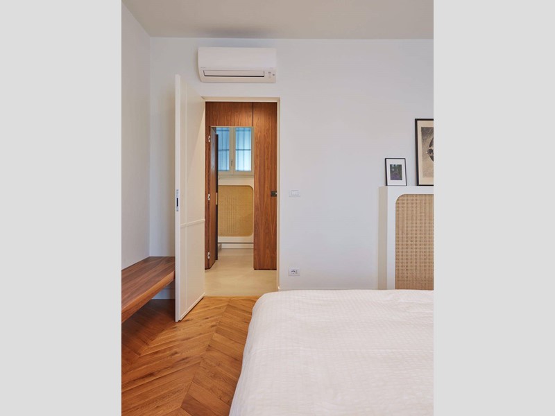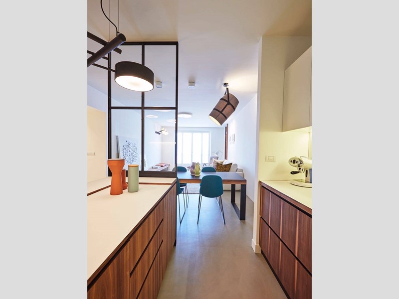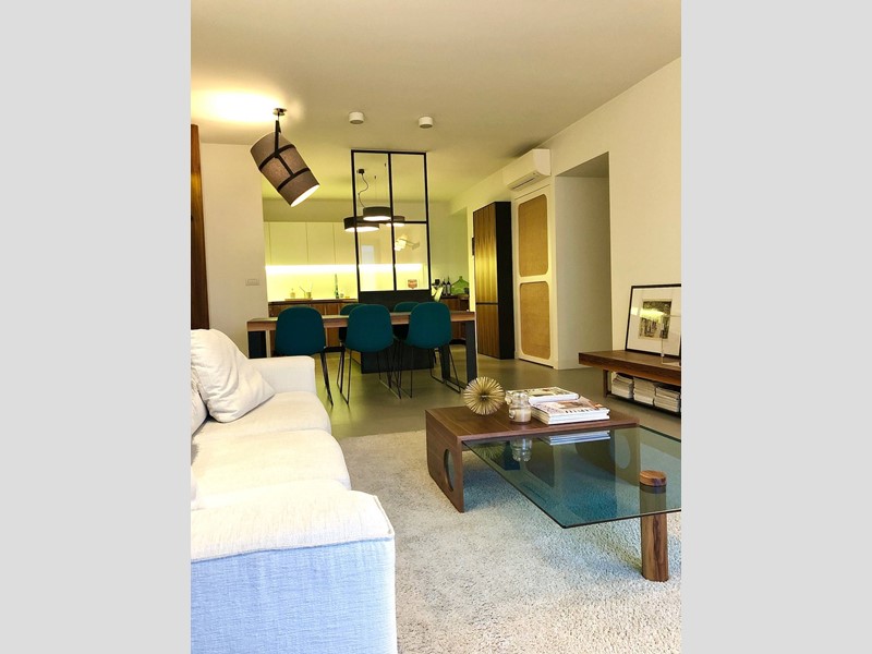 L'appartamento è così composto: ingresso su ampio corridoio con armadiate a muro, living open space con cucina di design a vista, grande camera da letto con annessa cabina armadi - originariamente la seconda cameretta della casa, bagno e bagnetto ospiti.
