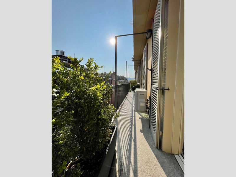 L'appartamento ha un'unica aria e, lungo tutta la proprietà, vi è un ampio balcone con affaccio sull'interno cortile.