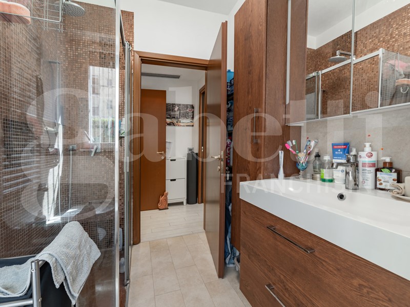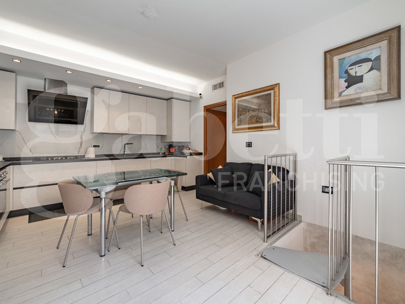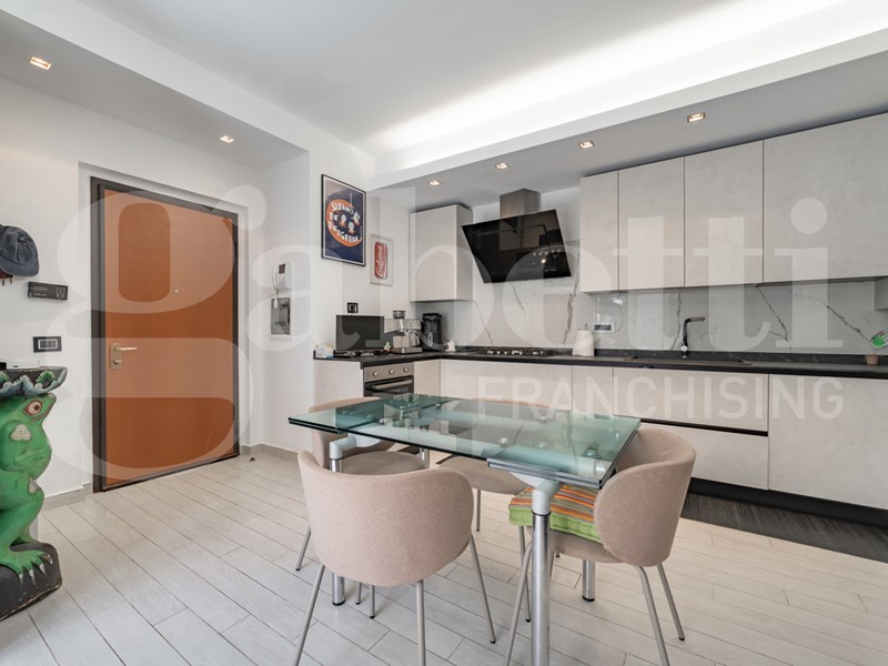 La soluzione è così composta: ampio soggiorno luminoso con elegante cucina a vista, due camere da letto ben proporzionate e bagno finestrato con ottime finiture.