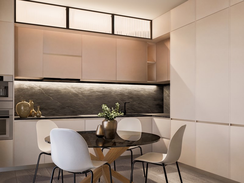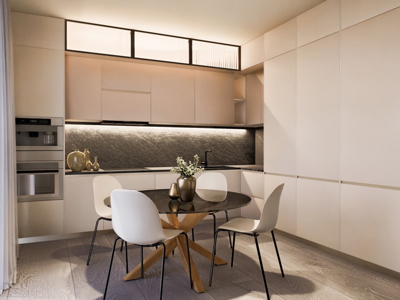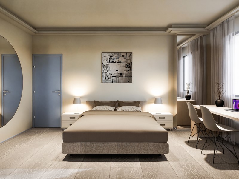 La soluzione si compone di una zona giorno con cucina a vista, due camere da letto, un bagno ed un ripostiglio utilizzabile in base alle proprie esigenze.