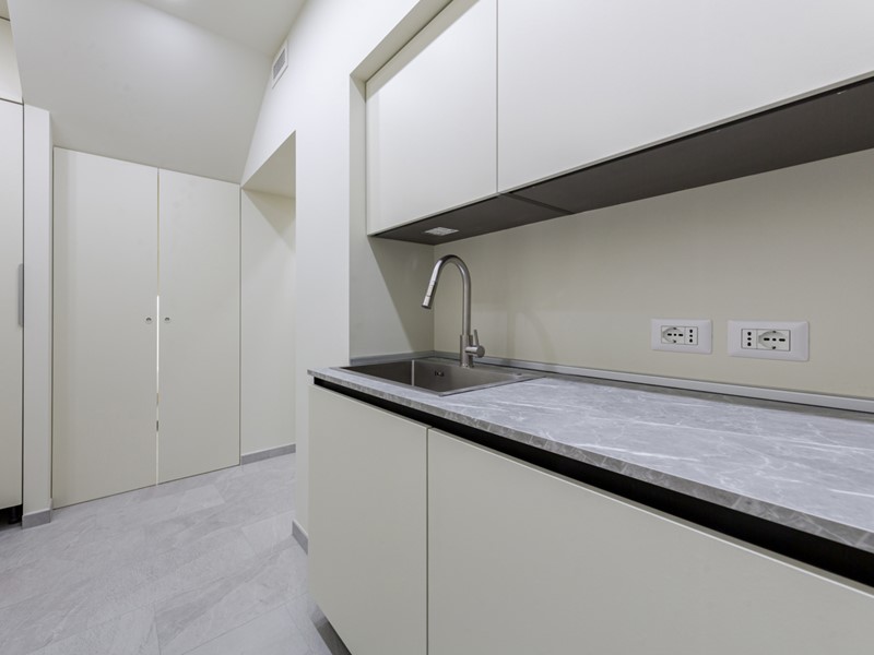 Come finiture interne presenta: porta blindata, infissi con doppi vetri, pavimentazione in gres, aria condizionata, impianto di ricircolo dell'aria, sanitari sospesi, apertura finestre meccanizzata.